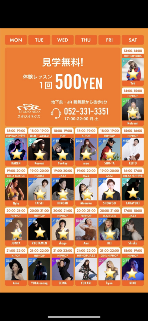 ⭐️の付いたクラスは、クローズクラスになりDREAMSTAGE出演者のみのクラスになります🎶⸒⸒